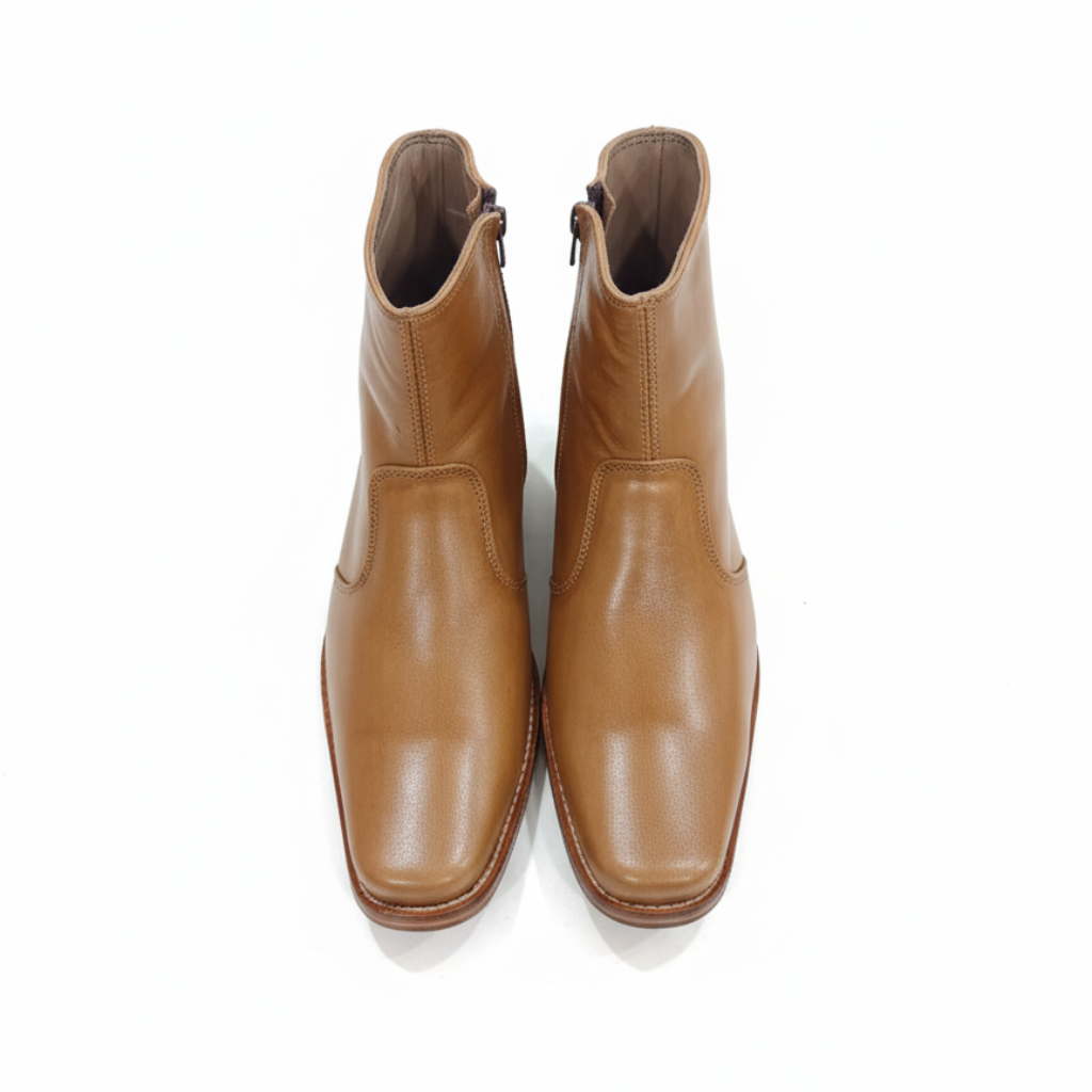 TAN Genuine Leather Ankle-Length Boots for Men | Handcrafted | Leather Sole | Side Zipper