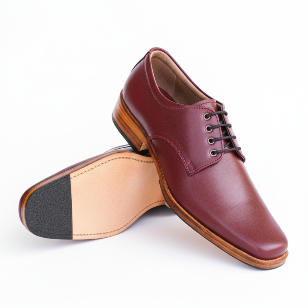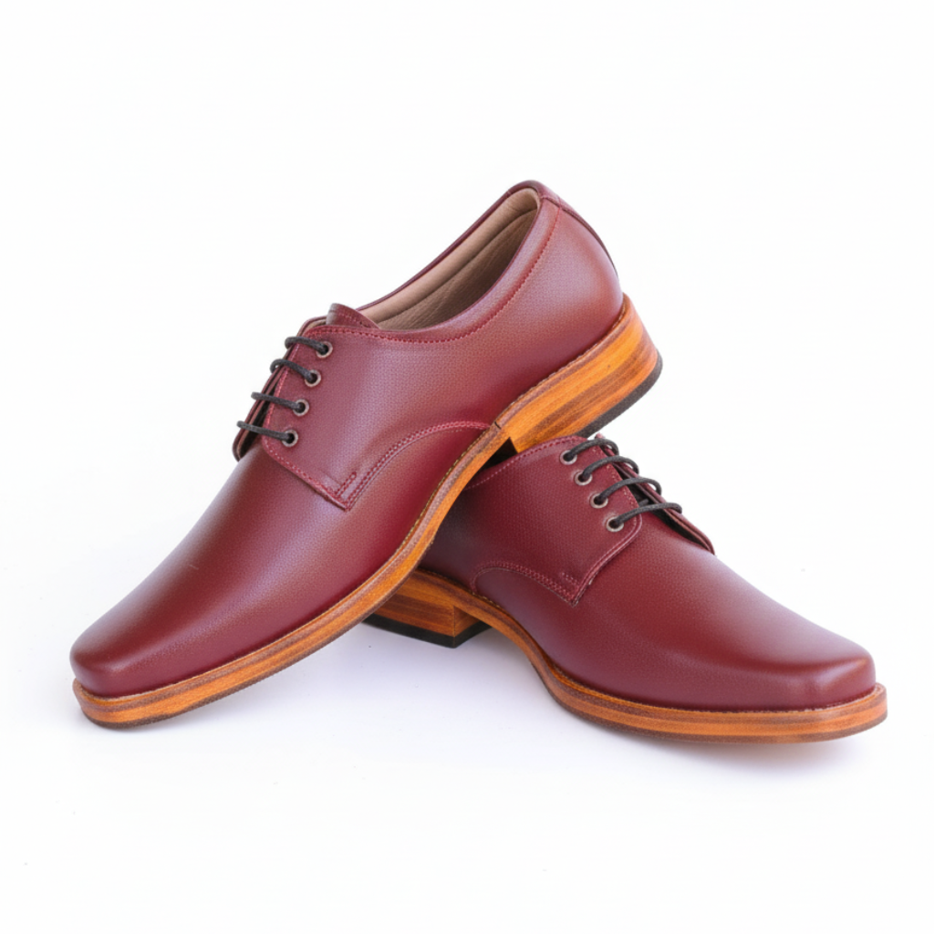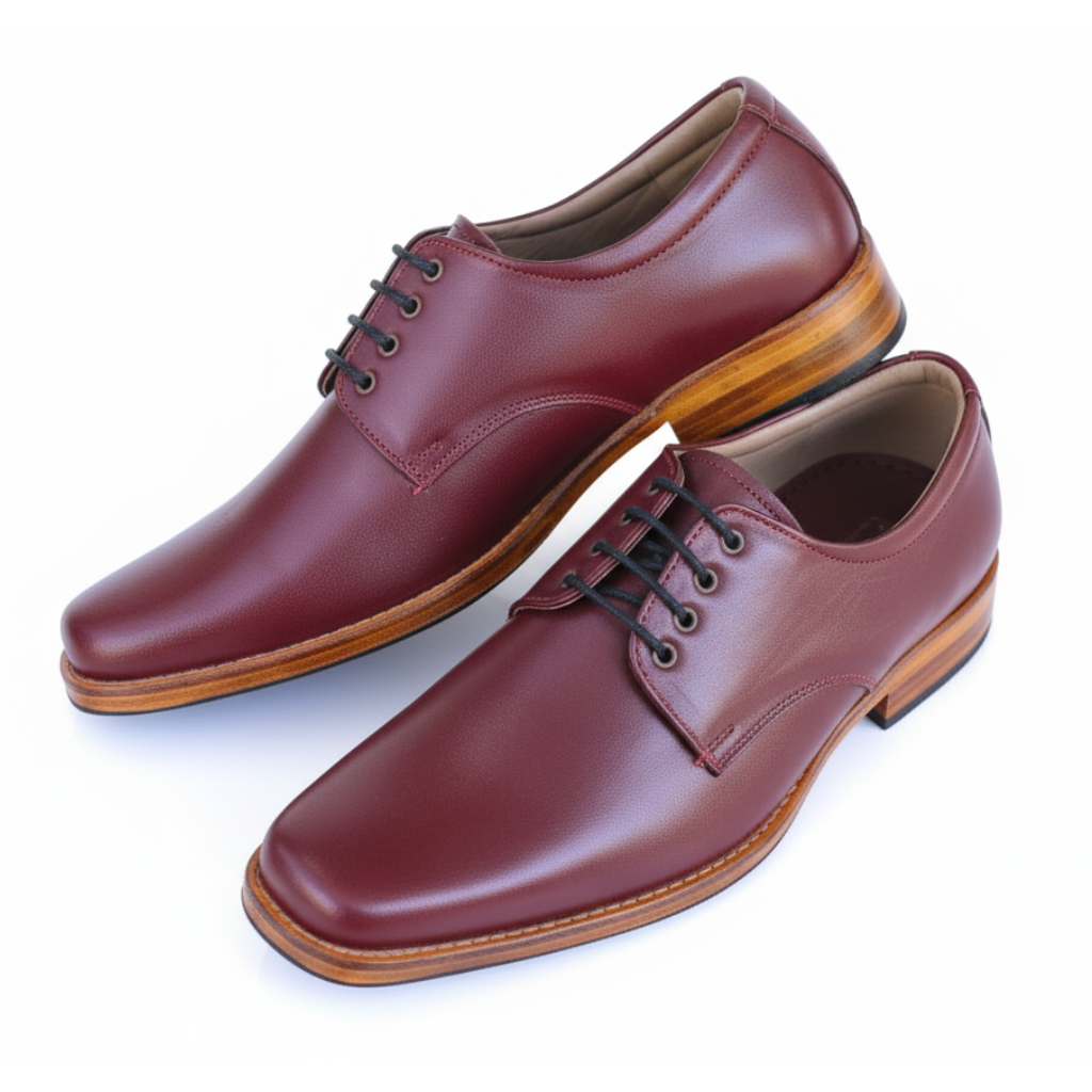 Maroon Genuine Leather Formal Shoes for Men | Slip-On with Laces | Leather Sole
