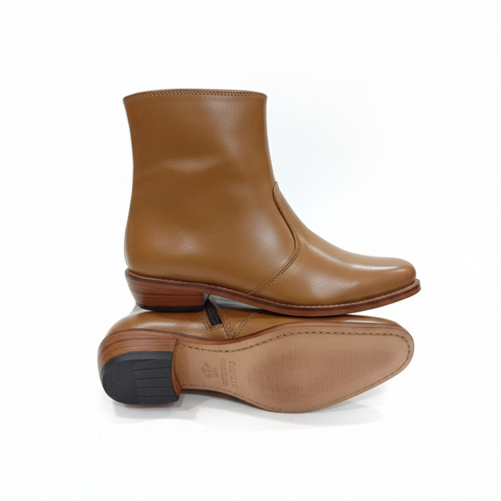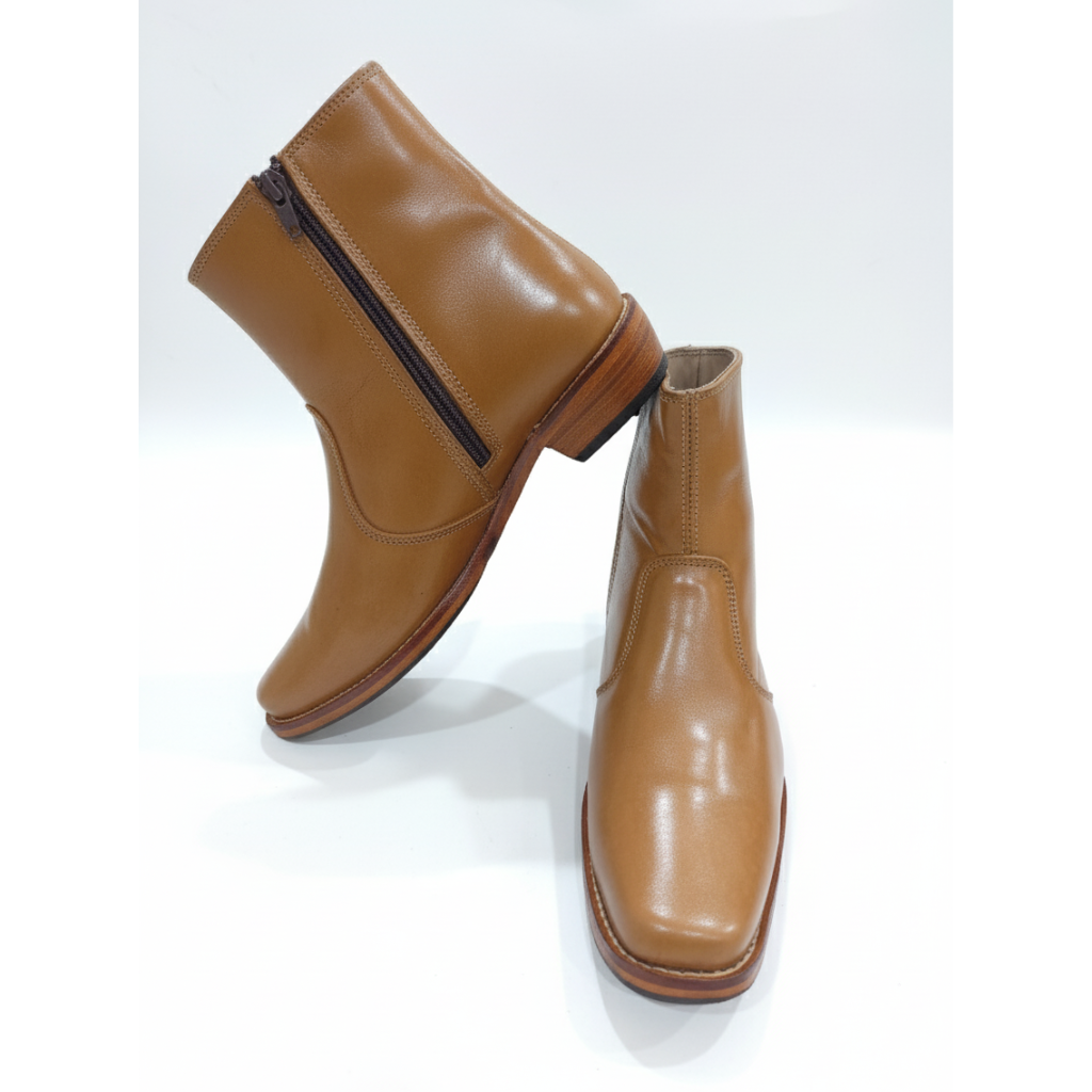 TAN Genuine Leather Ankle-Length Boots for Men | Handcrafted | Leather Sole | Side Zipper